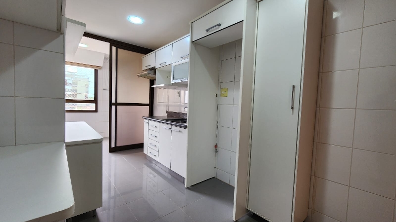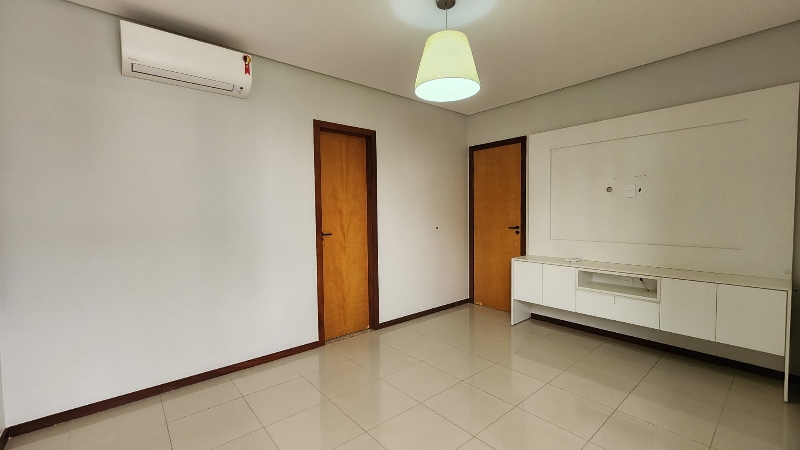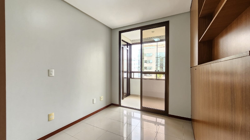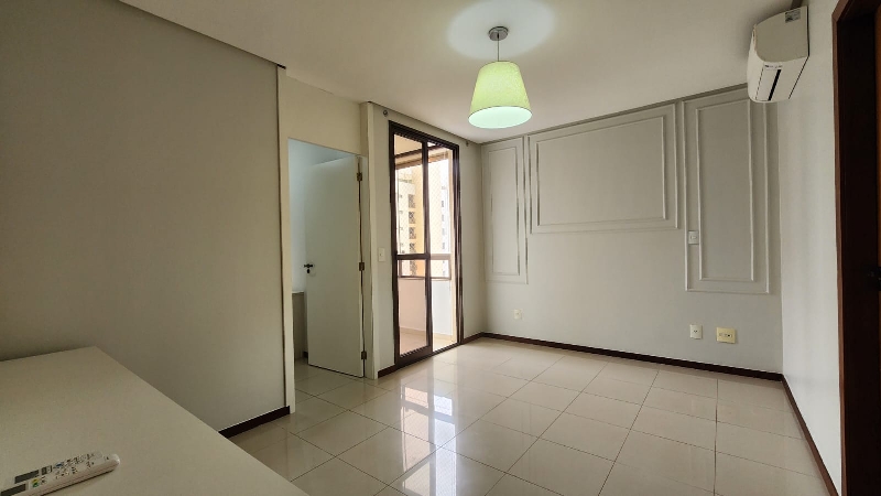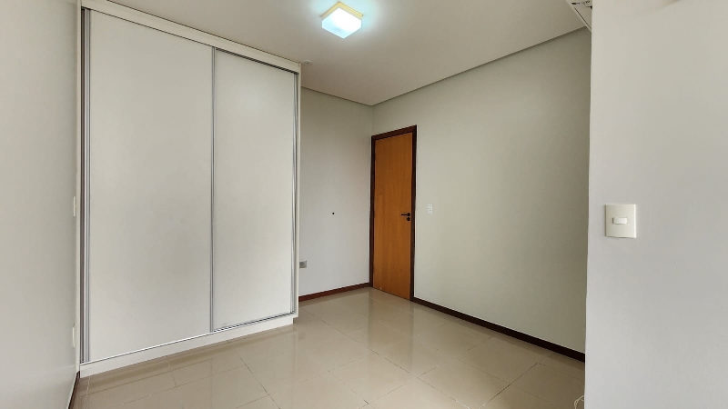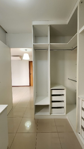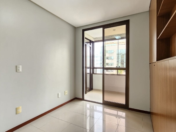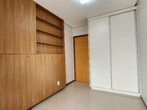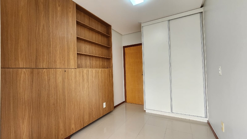 – Terceiro quarto com armário roupeiro embutido, ar-condicionado, armário auxiliar com prateleiras, piso em porcelanato e com vista livre;