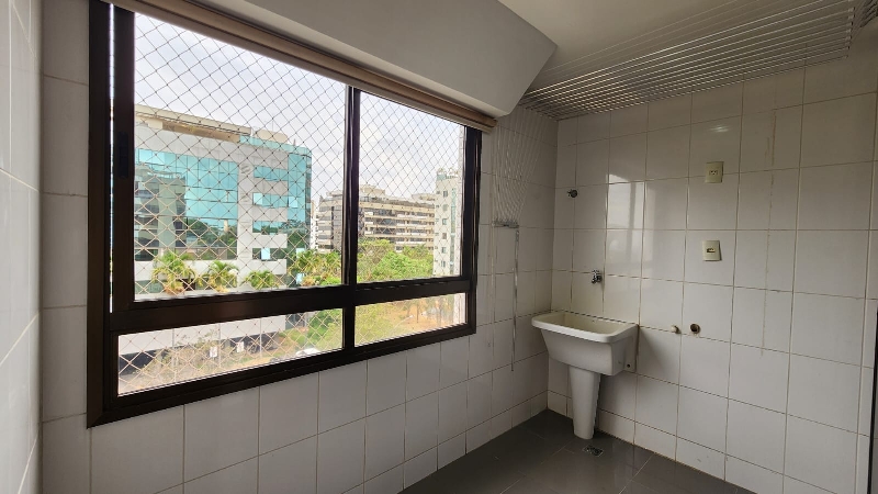 – Área de serviço separada, com tanque, ponto para máquina de lavar, varal, cortina de rolo e luminária;