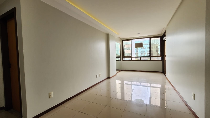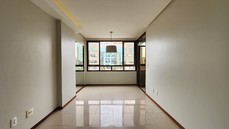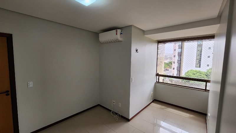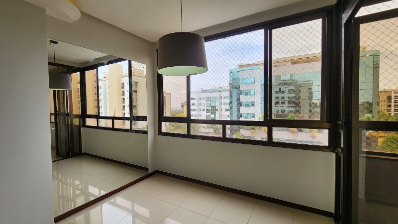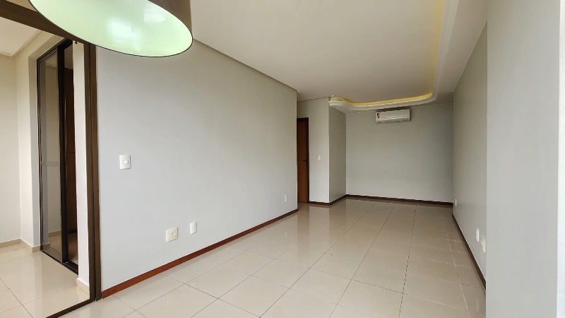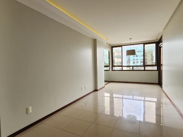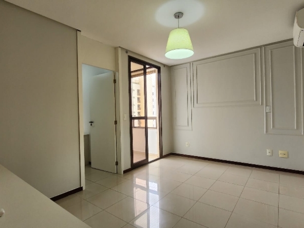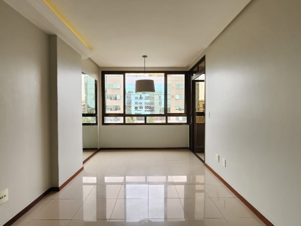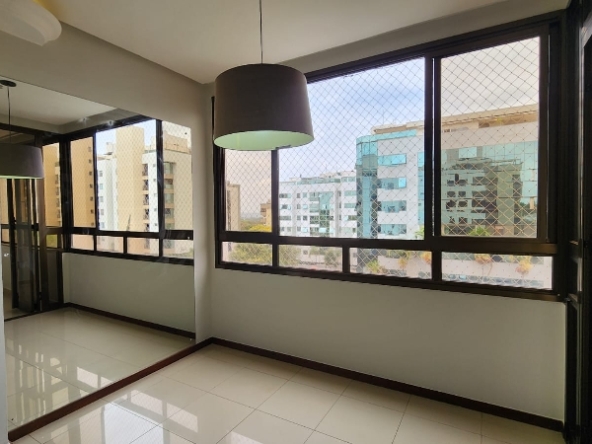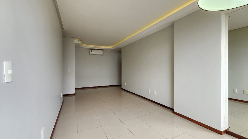 – Sala ampla e elegante, com piso em porcelanato, sanca decorativa com iluminação em led, ar-condicionado, espelho, luminárias, vista livre e acesso direto à varanda;