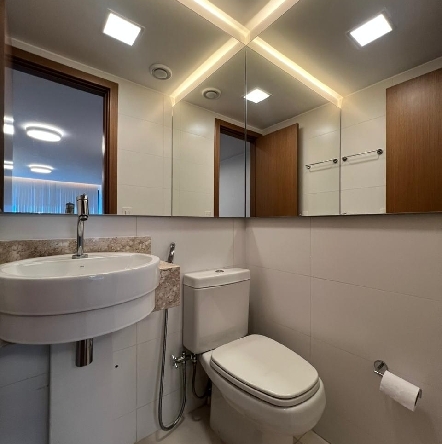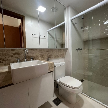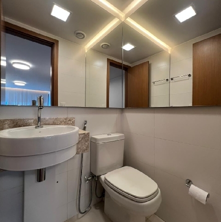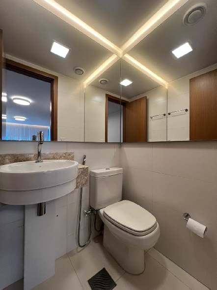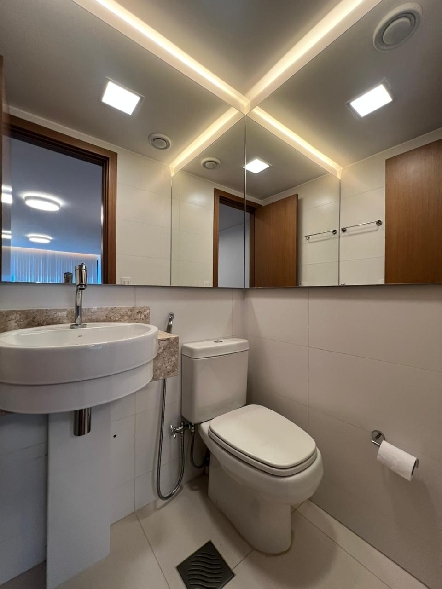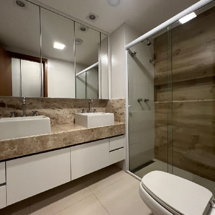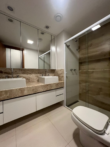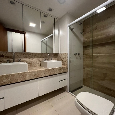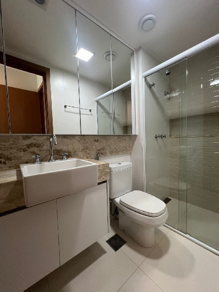 – Lavabo com mármore bege Bahia, espelhos, exaustor e acessórios;