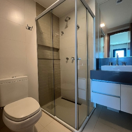 – Sala 2 ambientes, com vista livre, piso em vinilico, ar-condicionado, painel com rack, cortinas black out, rede de proteção e ótima ventilação natural;