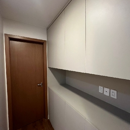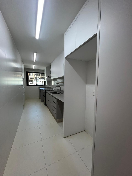 – Área de serviço, piso em porcelanato, armários planejados, ponto para máquina de lavar, piso e paredes revestidas em porcelanato, bancada em granito dekton com armários e gavetas;