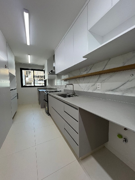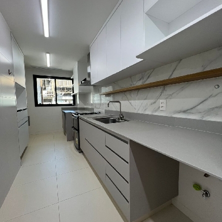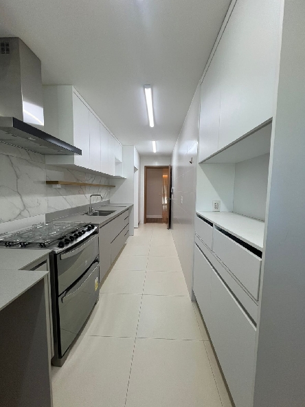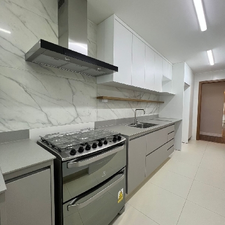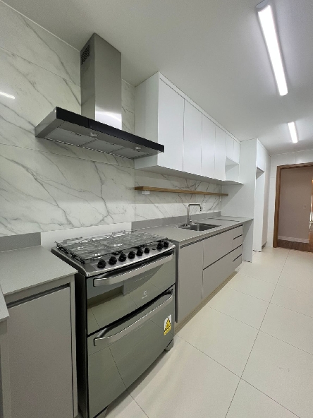 – Cozinha com armários planejados, pia bancada em granito dekton, fogão, depurador, piso em porcelanato, paredes revestidas em porcelanato, luminárias, filtro, vídeo porteiro, armário planejado e ótima iluminação natural;