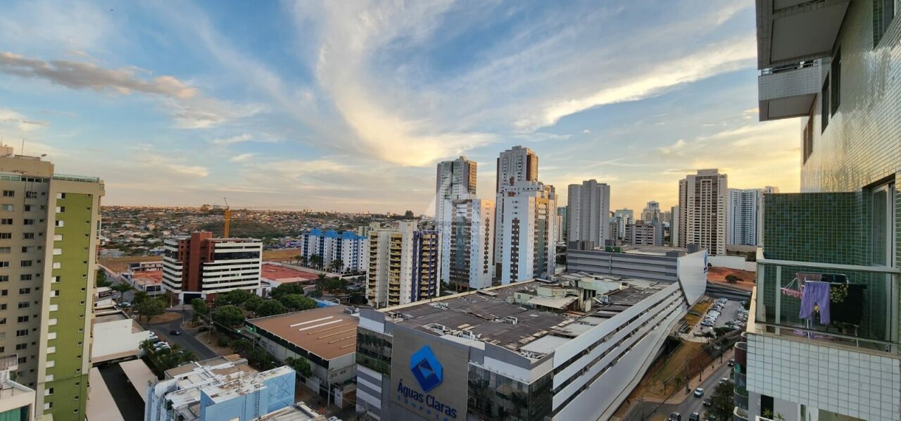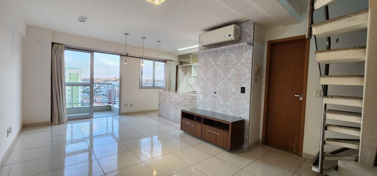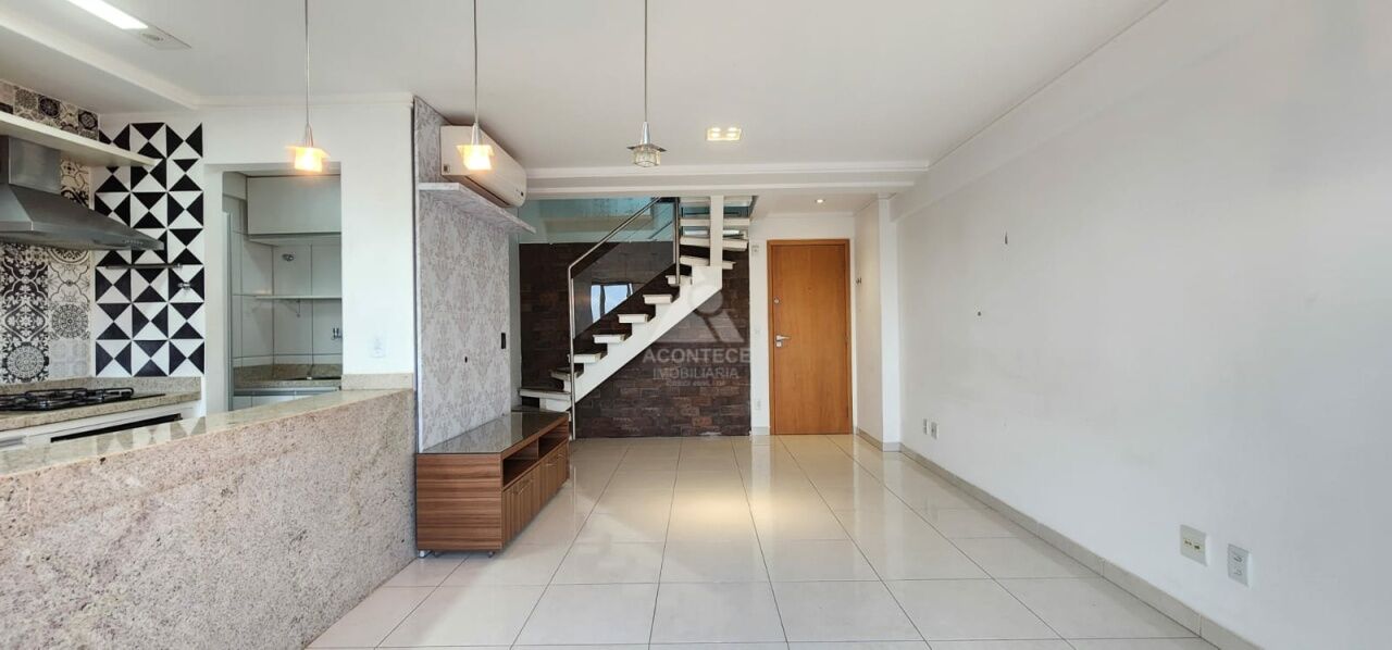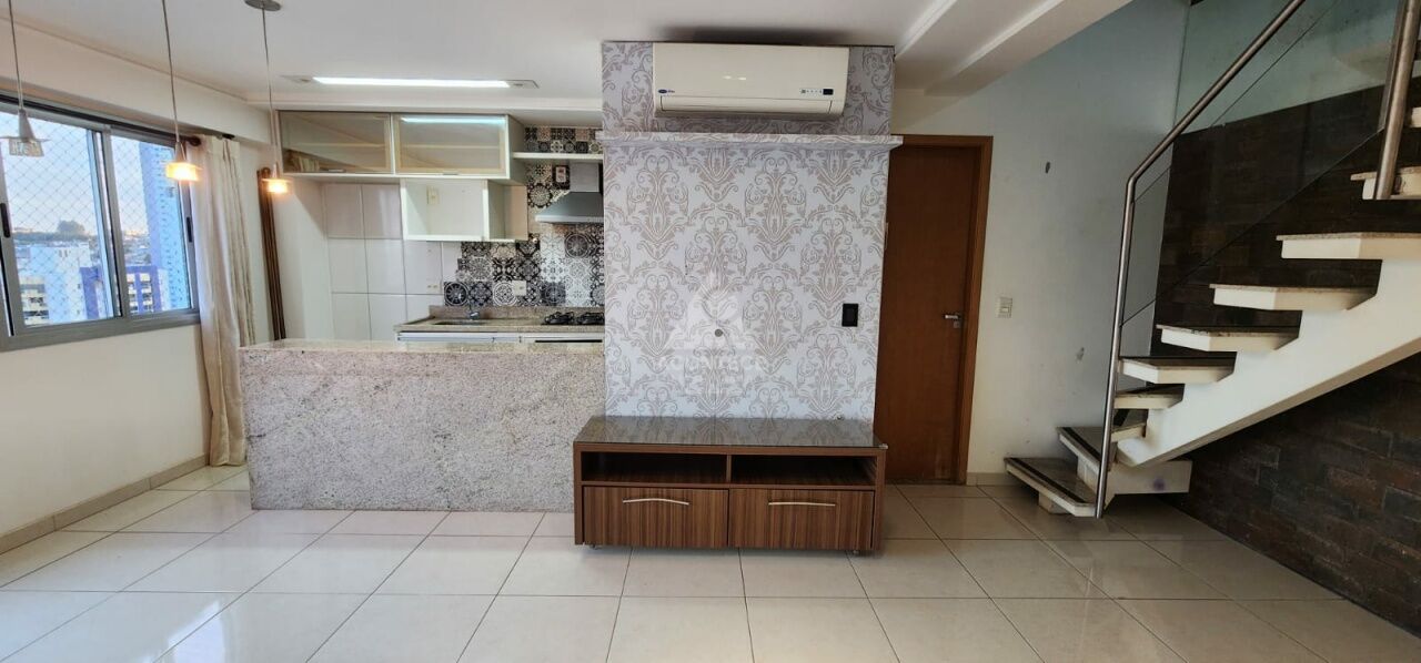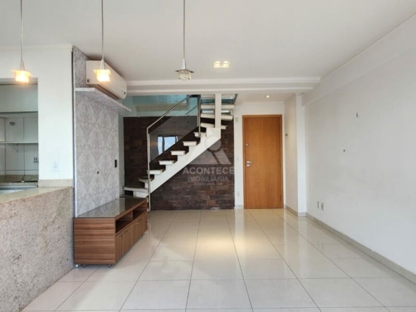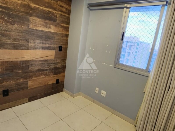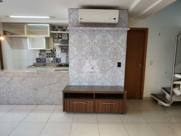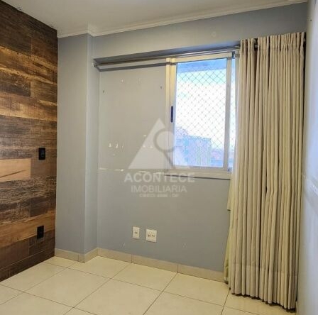 – Sala com painel para tv e rack embutido, ar condicionado piso em cerâmica, teto rebaixado em gesso, iluminação planejada, luminárias, cortinas e varanda com vista livre;