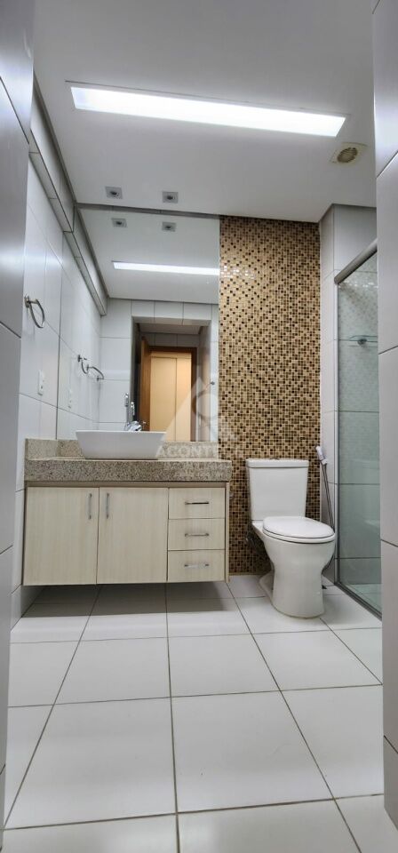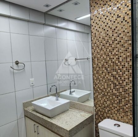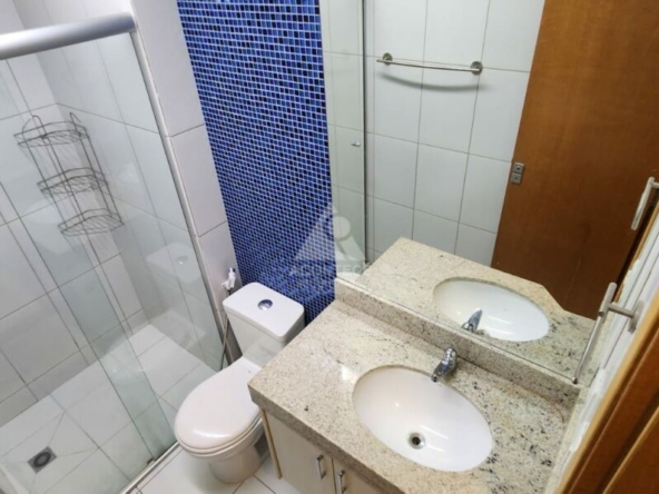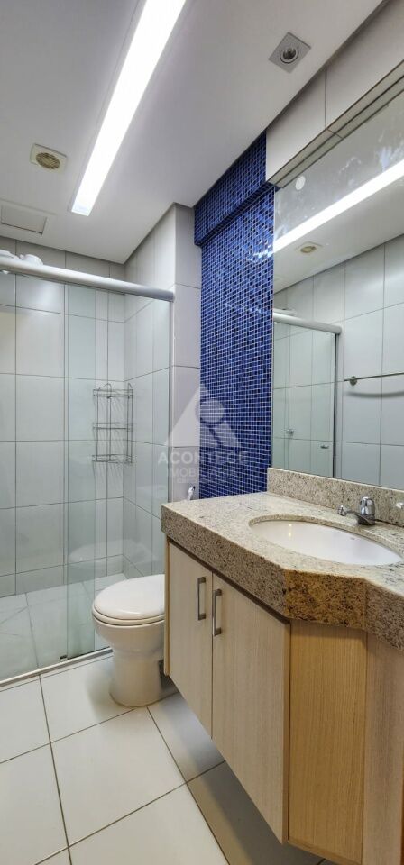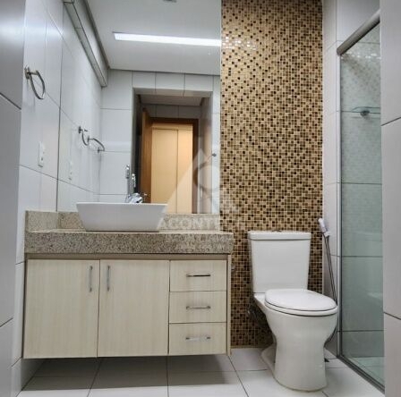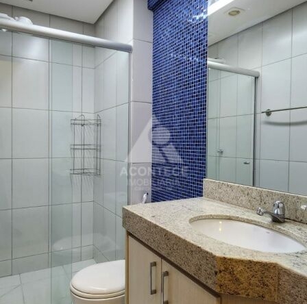 1 Suite com armário roupeiro embutido, ar condicionado, cortinas, iluminação planejada, piso em cerâmica, luminárias vista livre, banheiro com pia bancada em granito, espelho, box em vidro temperado, iluminação planejada e pastilhas decorativas.