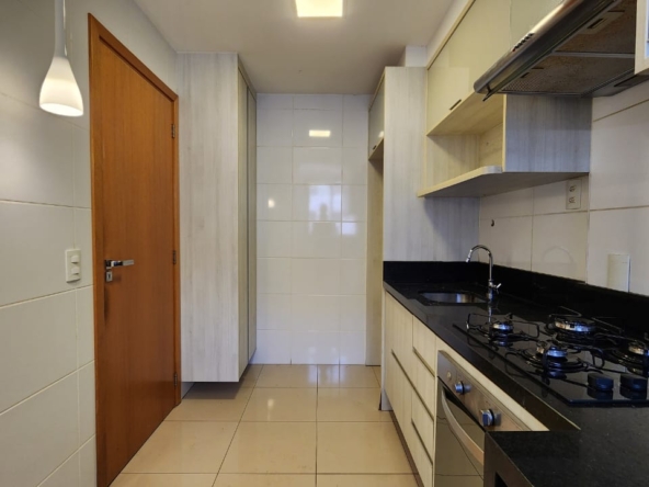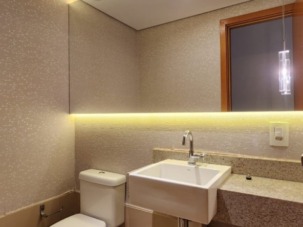 Apartamento sofisticado e totalmente reformado, com 2 suítes, sala ampla, lavabo, cozinha planejada, área de serviço e vaga de garagem no subsolo, localizado em um dos condomínios mais completos e valorizados do Noroeste.
