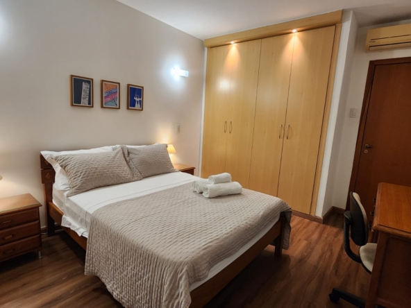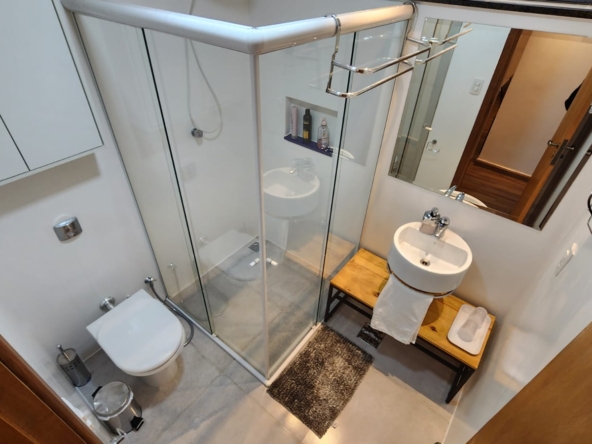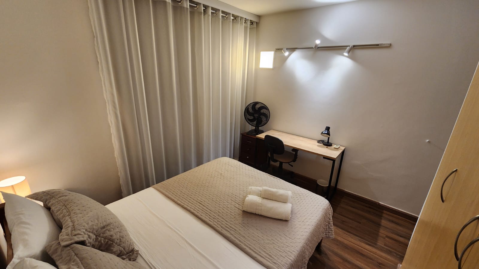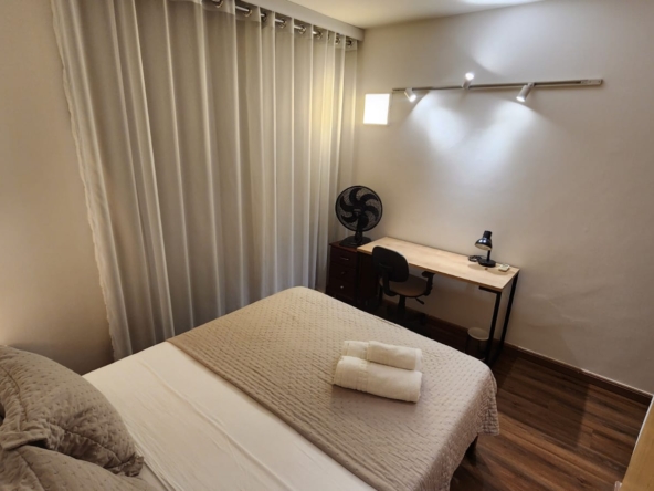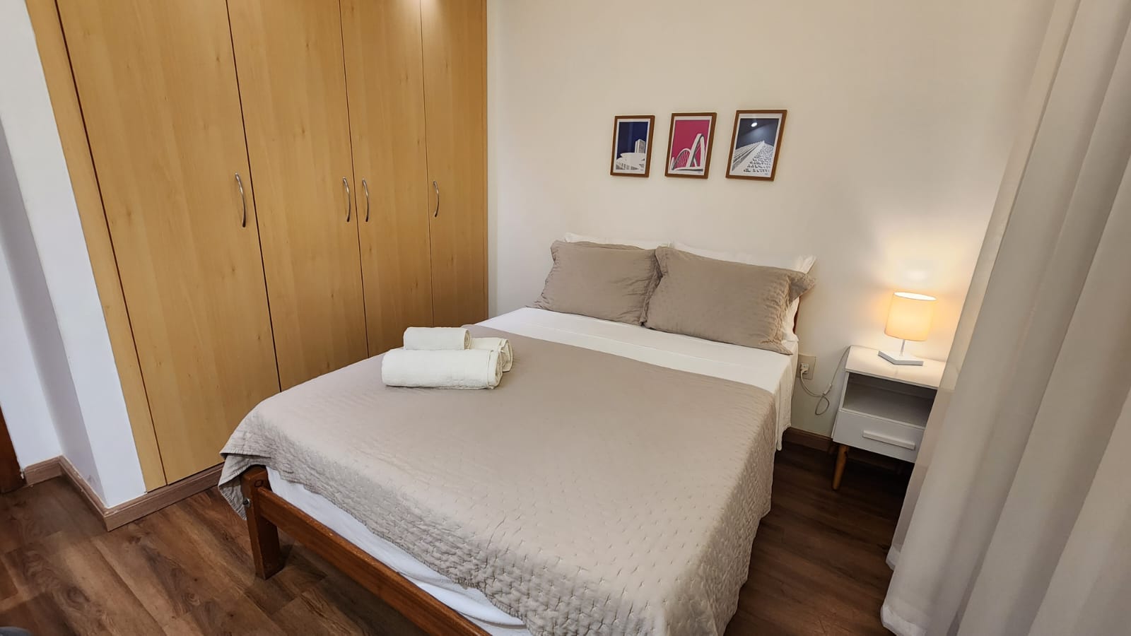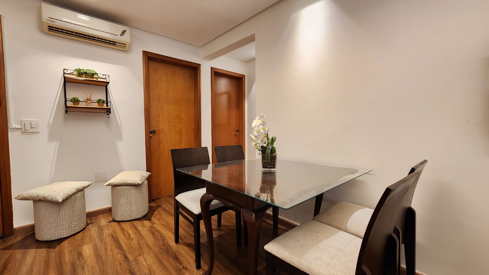 “Excelente oportunidade para quem busca conforto, praticidade e bom gosto! – Apartamento totalmente reformado, mobiliado e decorado, com ar-condicionado nos quartos e sala, fechadura eletrônica na porta de entrada e acabamentos modernos. ”