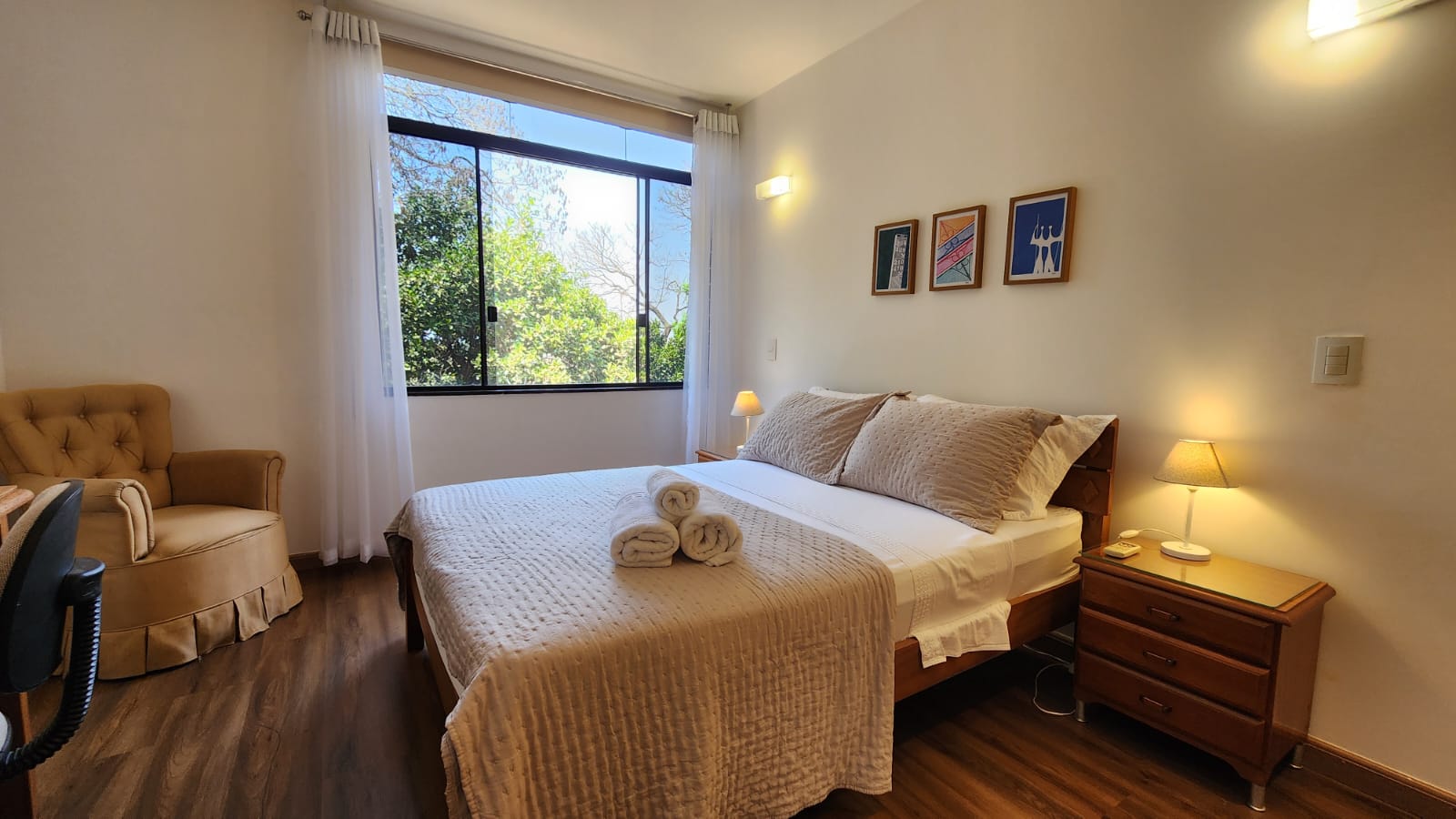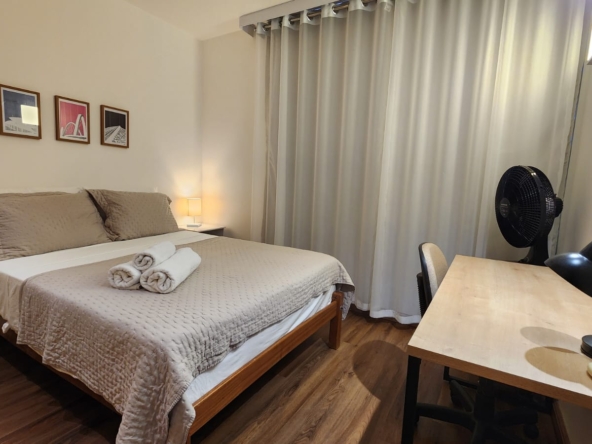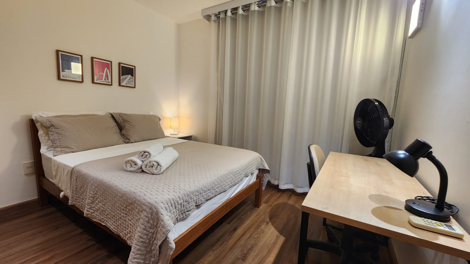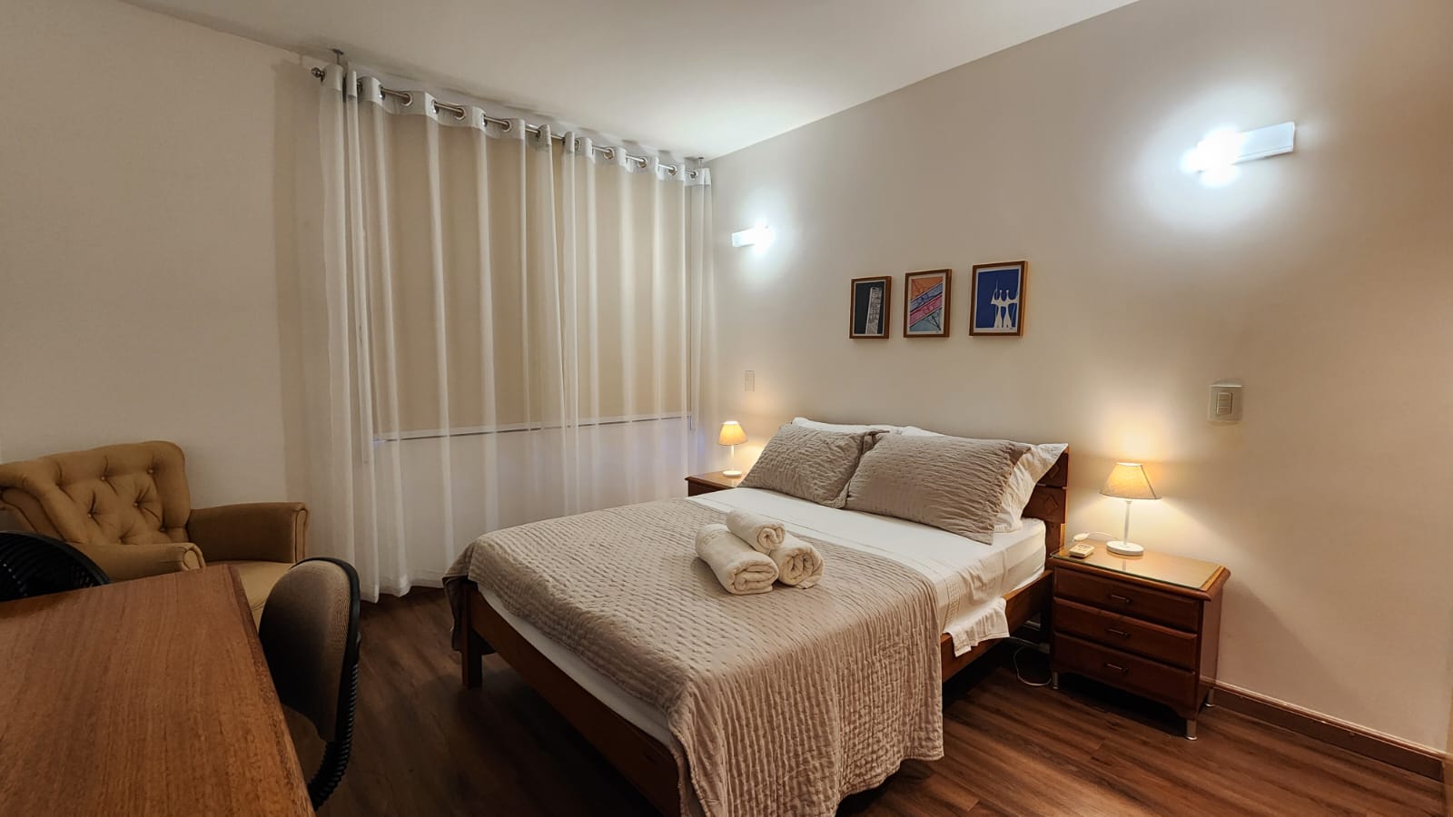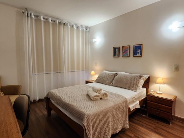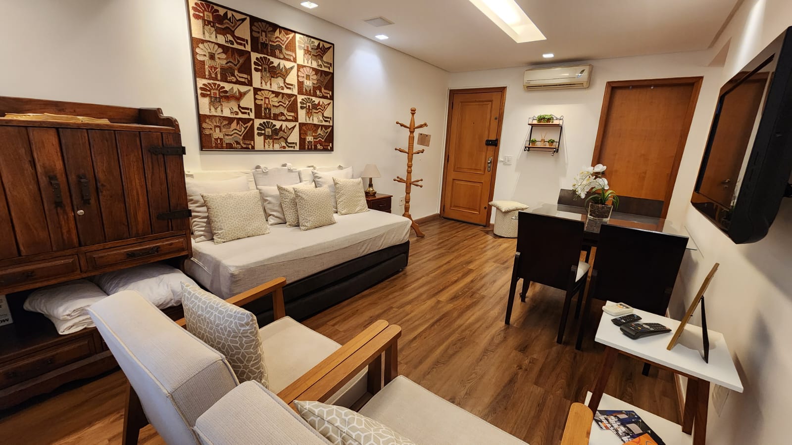 “Excelente oportunidade para quem busca conforto, praticidade e bom gosto! – Apartamento totalmente reformado, mobiliado e decorado, com ar-condicionado nos quartos e sala, fechadura eletrônica na porta de entrada e acabamentos modernos. ”